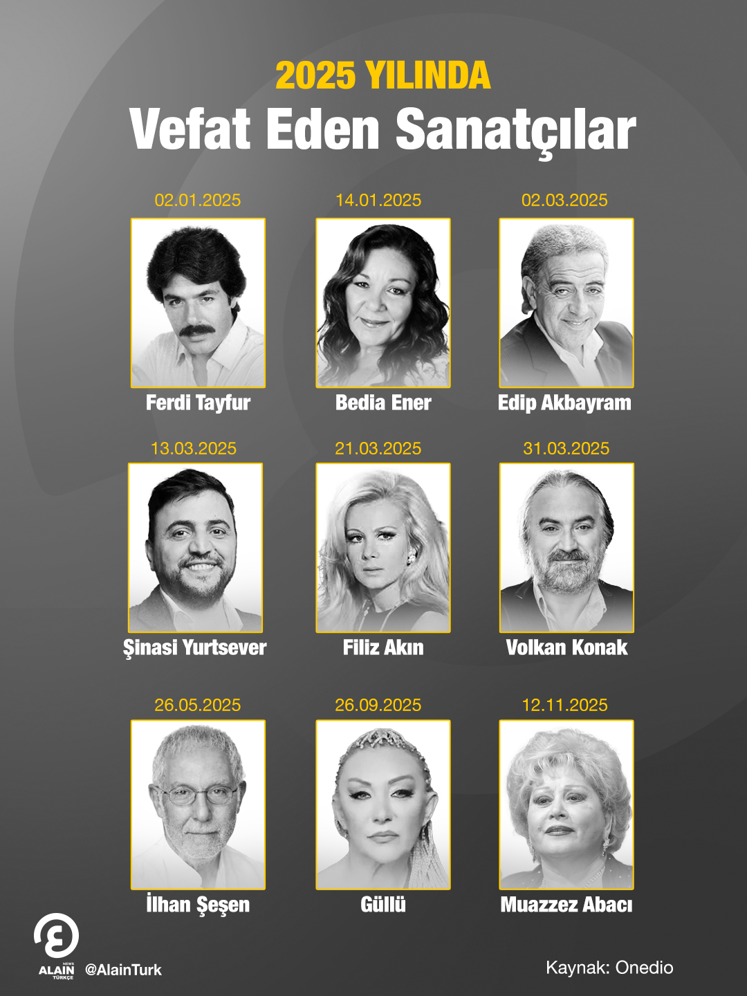 2025 yılı sanat, müzik ve televizyon dünyası için adeta bir yas yılı oldu. Peş peşe gelen vefat haberleri hem sevenlerini hem de sanat camiasını derinden sarstı.