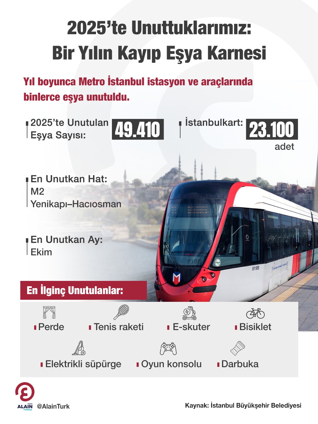 İstanbul’da toplu taşımayı kullanan binlerce yolcu, 2025 yılı boyunca Metro İstanbul istasyonları ve araçlarında birbirinden ilginç eşyalarını geride bıraktı.