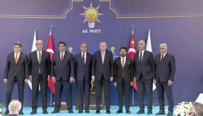 Yedi belediye başkanı farklı partilerden ayrılarak AK Parti’ye geçti. Rozetlerini Cumhurbaşkanı Erdoğan TBMM’deki grup toplantısında taktı.