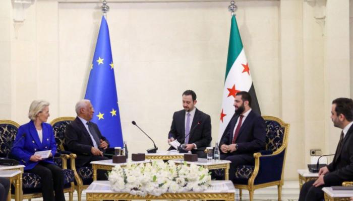 Avrupa Birliği’nin iki üst düzey ismi Ursula von der Leyen ve Antonio Costa, Şam’da Suriye Cumhurbaşkanı Ahmed Şara ile görüştü. Suriye’nin toparlanması ve yeniden inşası sürecinde ülkeye destek verileceğini açıkladı.