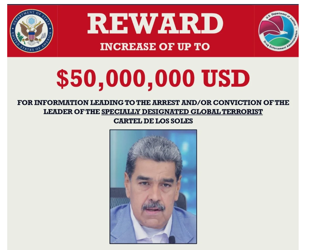 ABD Adalet Bakanlığı, Maduro’nun yakalanmasına ya da hüküm giymesine katkı sağlayacak istihbarat karşılığında 50 milyon dolar ödül verileceğini duyurdu. Bu rakam, ABD’nin şimdiye kadar bir devlet başkanı hakkında açıkladığı en yüksek ödül olarak kayıtlara geçti.