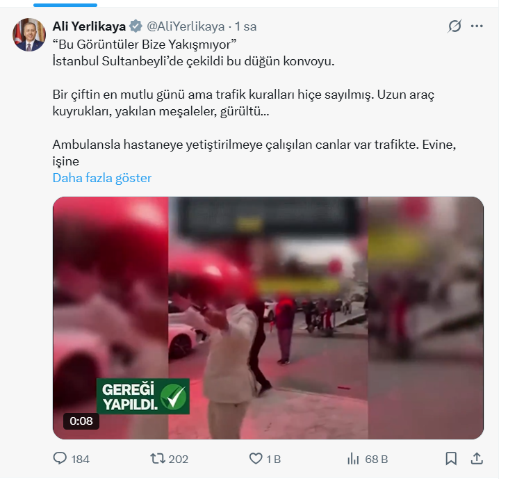 İstanbul Sultanbeyli’de trafiği felç eden düğün konvoyu görüntülerine tepki gösteren İçişleri Bakanı Ali Yerlikaya, “Bu görüntüler bize yakışmıyor” dedi. Yeni trafik kanunu teklifinde yer alan ağır yaptırımları duyurdu.