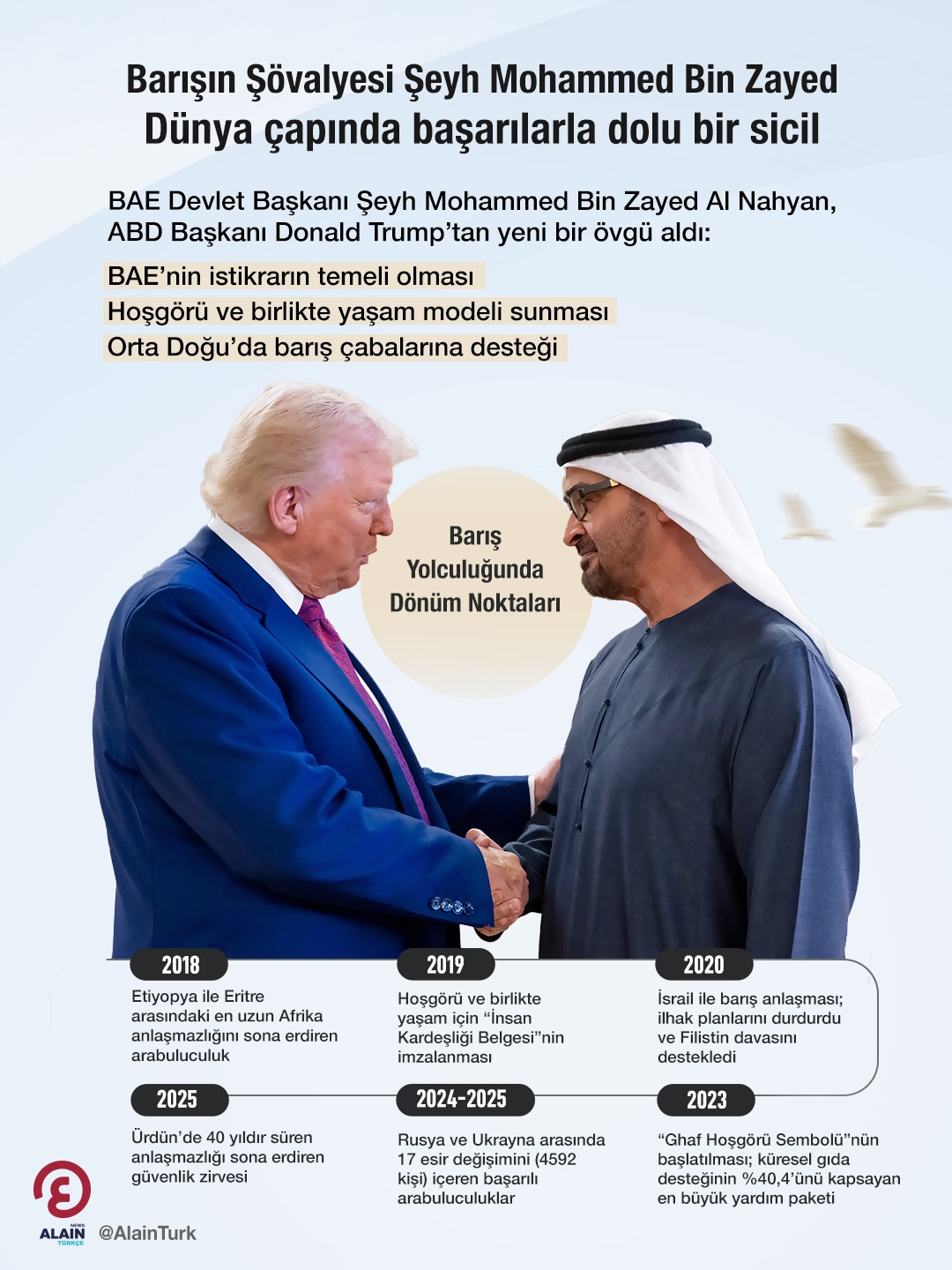 Birleşik Arap Emirlikleri Devlet Başkanı Şeyh Mohammed Bin Zayed, uluslararası arenada barış, istikrar ve hoşgörünün sembolü olarak öne çıkan liderlerden biri kabul ediliyor.