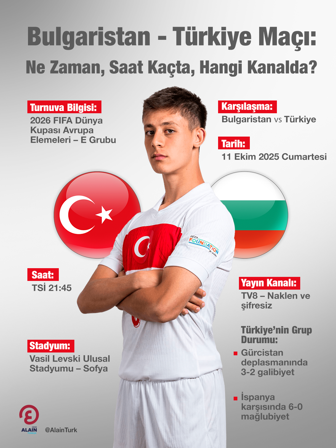 2026 Dünya Kupası Elemeleri heyecanı sürüyor. A Millî Takım, E Grubu’ndaki kritik maçta Bulgaristan deplasmanına çıkıyor.
