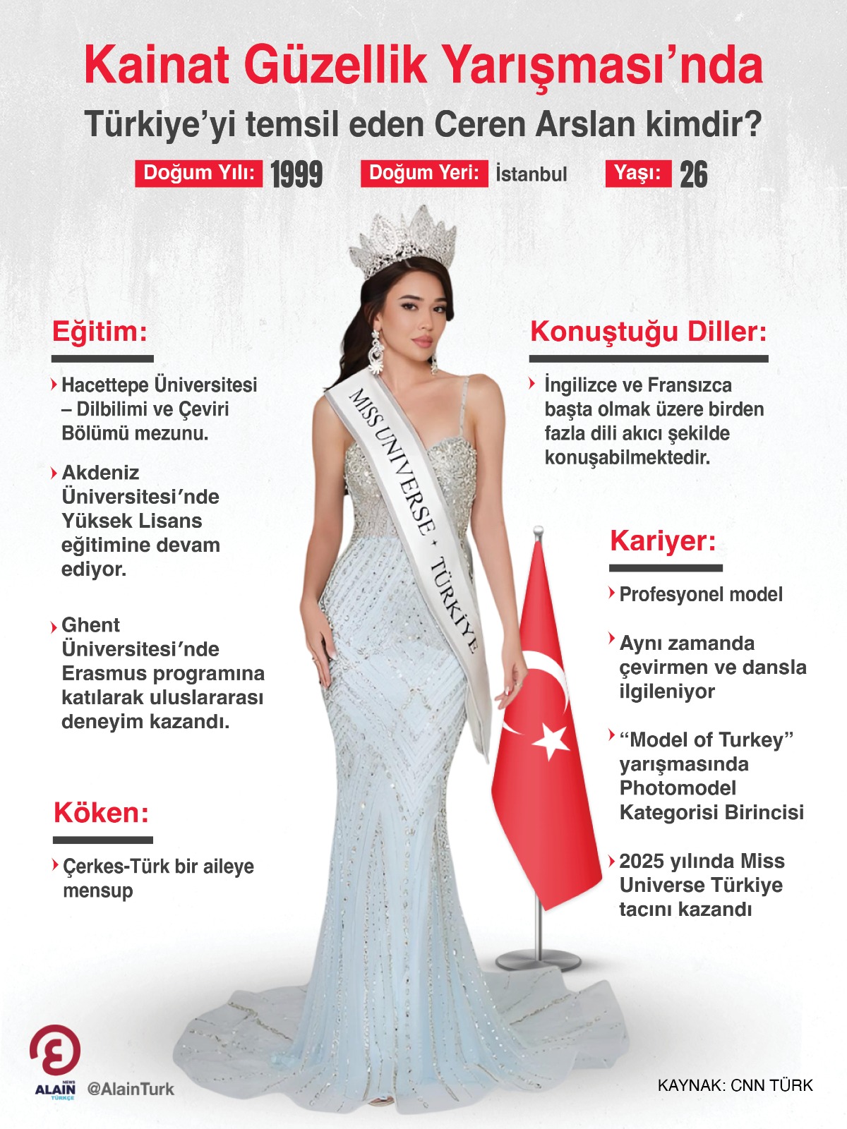 Güzelliğiyle dikkat çeken Ceren Arslan, Miss Universe 2025 yani Kainat Güzellik Yarışması’nda Türkiye’yi temsil edecek. İşte Ceren Arslan’ın hayatı, kariyeri, eğitimi, boyu ve Kainat Güzeli Türkiye 2025 yolculuğuna dair tüm merak edilen detaylar.