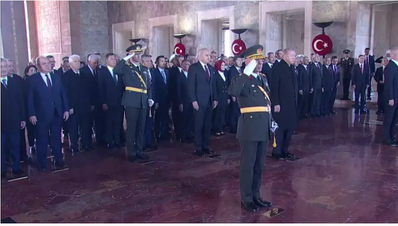 Cumhurbaşkanı Recep Tayyip Erdoğan başkanlığındaki devlet erkanı, 29 Ekim Cumhuriyet Bayramı dolayısıyla Anıtkabir’i ziyaret etti. Cumhurbaşkanı Erdoğan, Atatürk’ün mozolesine çelenk bıraktıktan sonra saygı duruşunda bulundu. Törene Türkiye Büyük Millet Meclisi Başkanı Numan Kurtulmuş, Cumhurbaşkanı Yardımcısı Cevdet Yılmaz, bakanlar, yüksek yargı üyeleri, Türk Silahlı Kuvvetleri komuta kademesi ve siyasi parti temsilcileri katıldı.