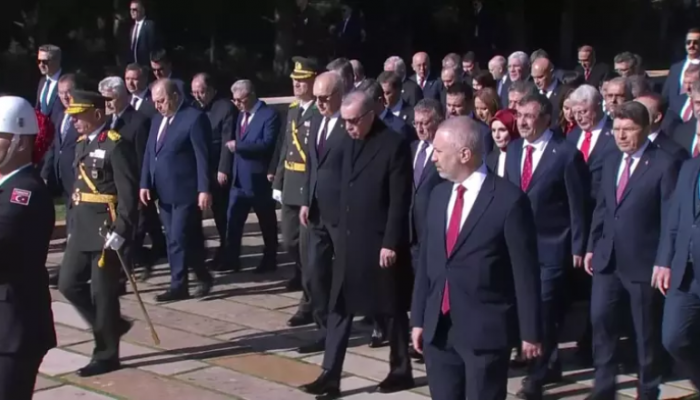 Cumhurbaşkanı Erdoğan ve devlet erkanı, 29 Ekim Cumhuriyet Bayramı kapsamında Anıtkabir’i ziyaret ederek Atatürk’ün mozolesine çelenk bıraktı.