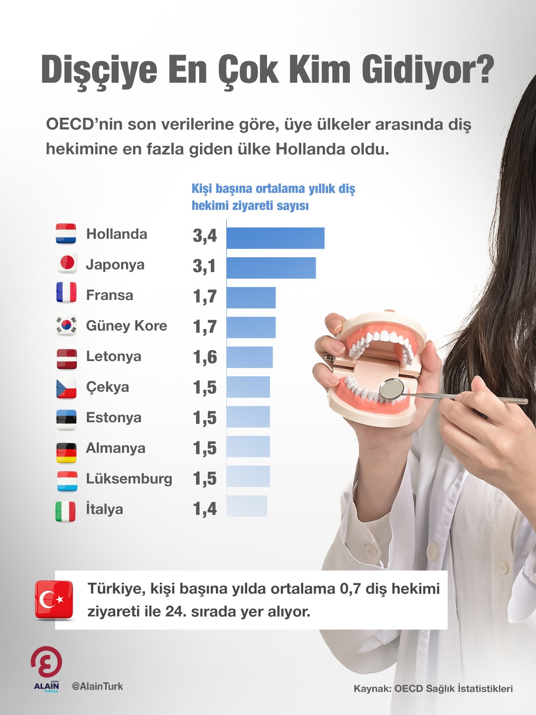 OECD’nin son verilerine göre, üye ülkeler arasında diş hekimine en fazla giden ülke Hollanda oldu.