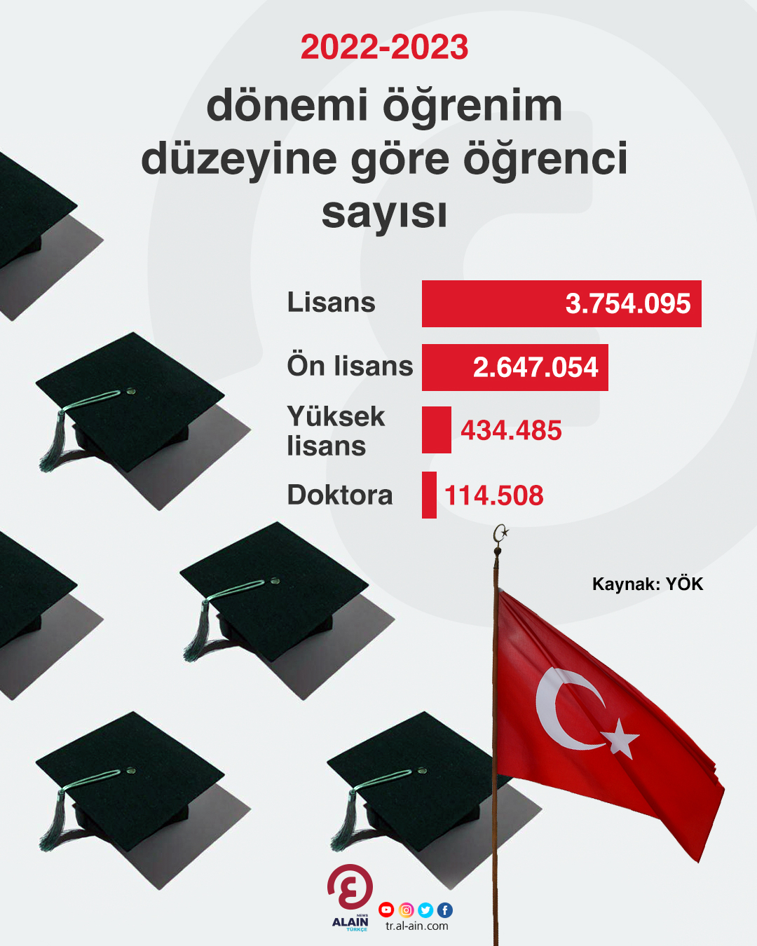 2022-2023 dönemi öğrenim düzeyine göre öğrenci sayısı