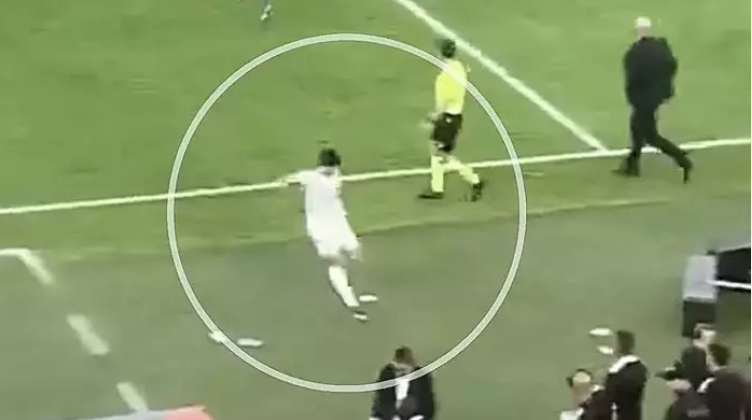 Maçın sona ermesiyle birlikte Arda Güler, saha kenarındaki bir su şişesine sinirle tekme atmak istediği sırada dengesini kaybederek yere düştü. Kısa süreli şaşkınlık yaşanırken, genç oyuncu hızla ayağa kalktı ve ardından doğrudan soyunma odasına yöneldi. Tribündeki bir taraftar tarafından kaydedilen bu görüntüler, sosyal medyada kısa sürede yaygınlaştı.