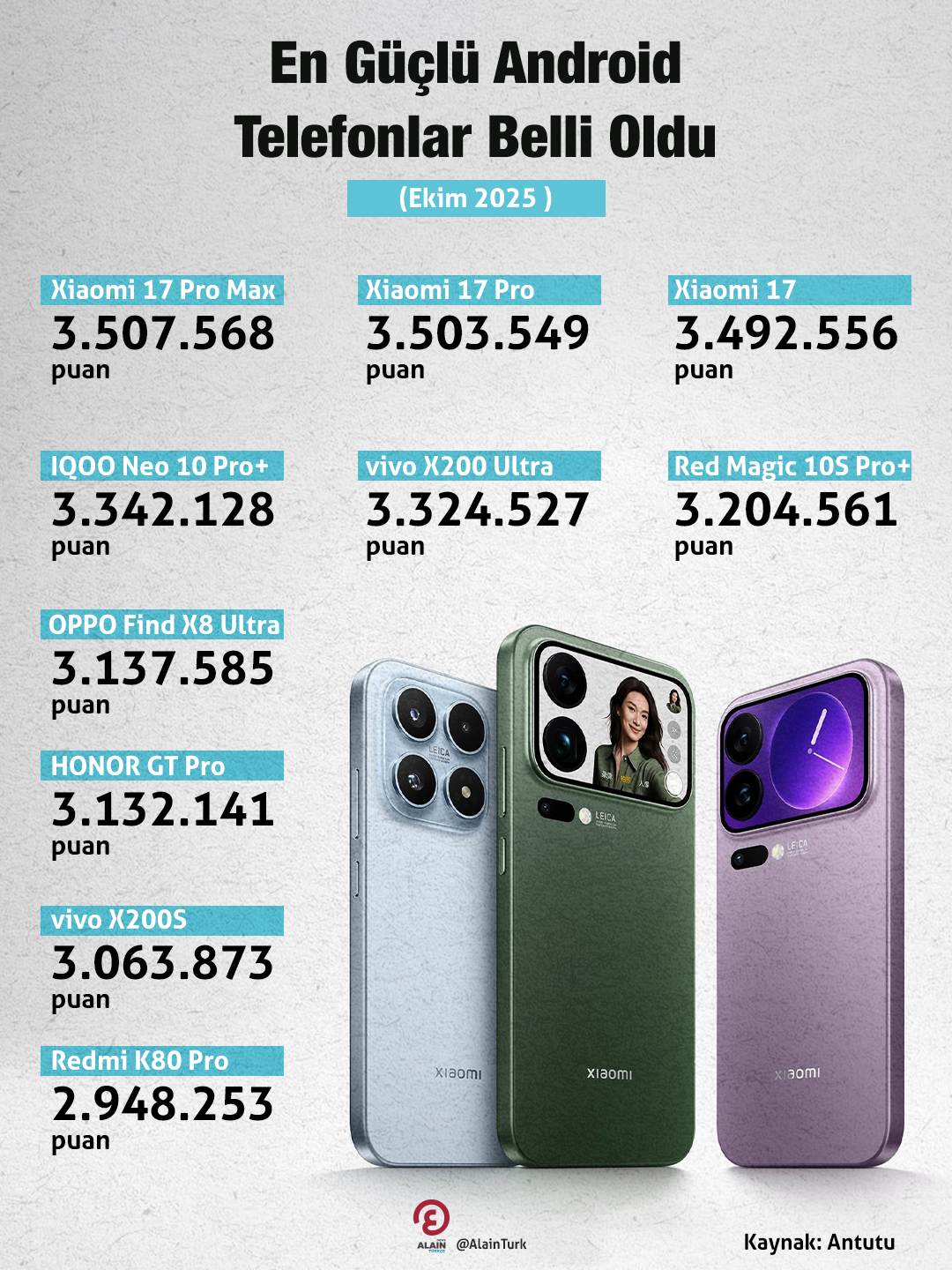 Piyasada çok sayıda Android telefon bulunuyor. Peki Ekim 2025 itibarıyla en güçlü Android telefonlar hangileri. İşte Antutu testlerine göre sonuçlar