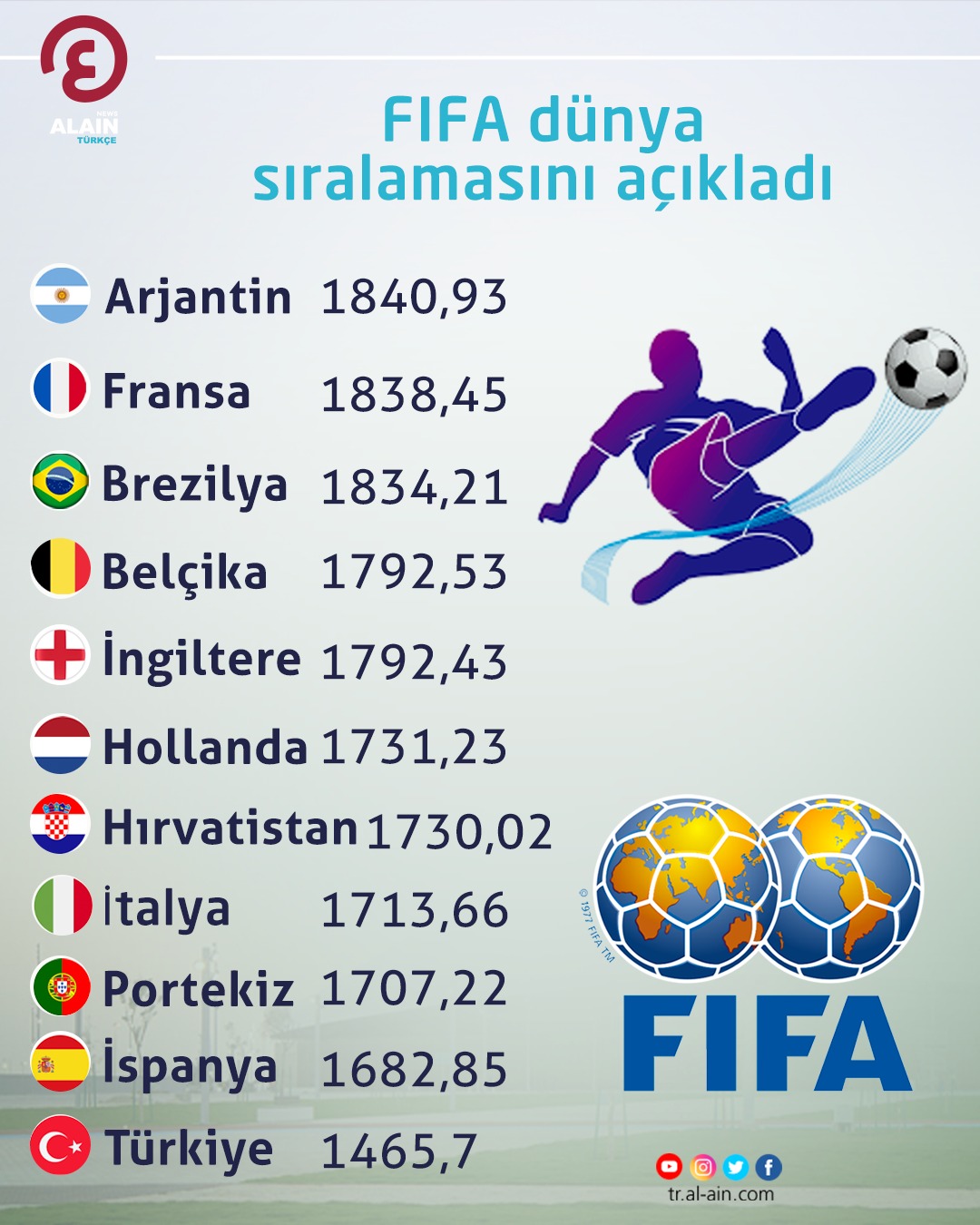 FIFA dünya sıralamasını açıkladı