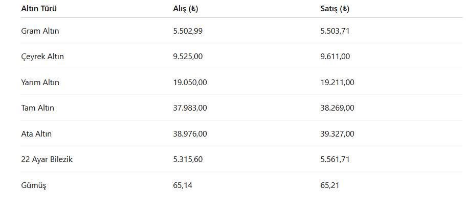 27 Ekim itibarıyla gram altın alış fiyatı 5.502,99 TL, satış fiyatı ise 5.503,71 TL seviyesinde bulunuyor. Altın piyasasındaki düşüş eğilimi, hem ons altın fiyatındaki gerileme hem de TCMB’nin faiz indirimi sonrası oluşan talep zayıflığıyla destekleniyor.