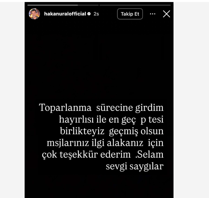 Hakan Ural, yaptığı paylaşımda ciddi bir rahatsızlık yaşamadığını, sadece mevsimsel bir soğuk algınlığı geçirdiğini belirtti. Doktor tavsiyesi üzerine birkaç gün dinlendiğini aktaran Ural, “Kısa bir aradan sonra kaldığımız yerden devam edeceğiz.” sözleriyle sevenlerine moral verdi.