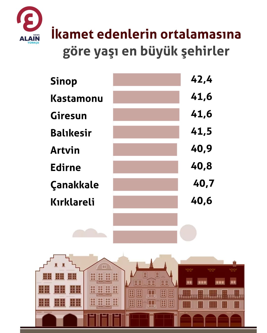 İkamet edenlerin ortalamasına göre yaşı en büyük şehirler