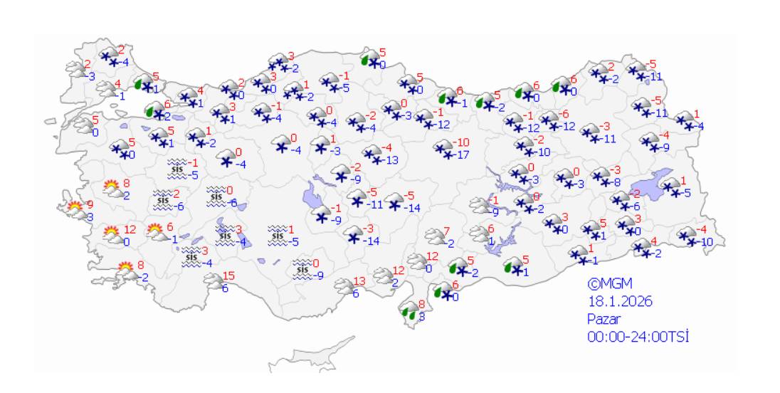İç ve doğu kesimlerde buzlanma ve don olayı ile birlikte pus ve yer yer sis beklendiği ifade edilirken, sürüş güvenliği ve günlük yaşamda aksama riskine karşı uyarı yapıldı.