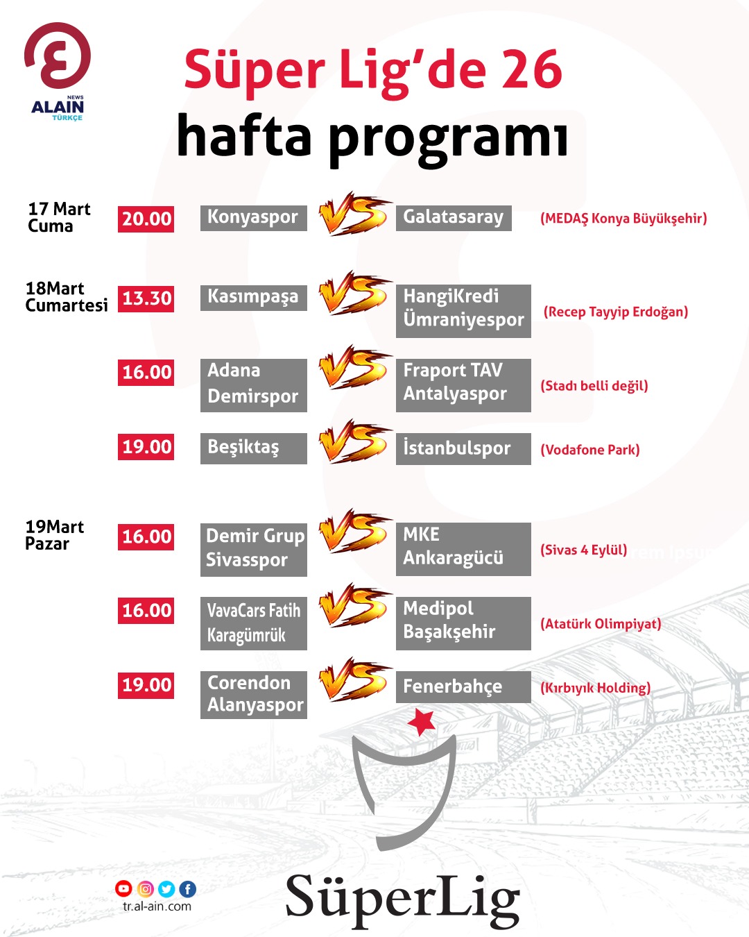 16.00 Adana Demirspor-Fraport TAV Antalyaspor (Stadı belli değil)
