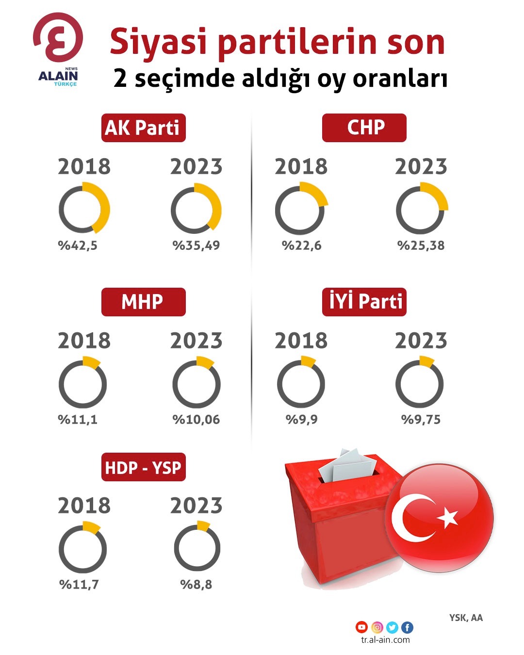 Siyasi partilerin son 2 seçimde aldığı oy oranları