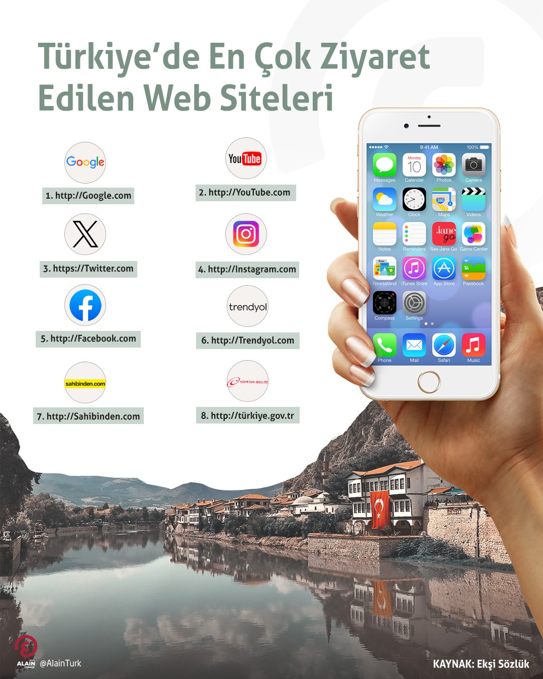 DİĞER Türkiye’de En Çok Ziyaret Edilen Web Siteleri Alain Türk yayinlama: 2023/10/9 13:41 TR Güncelleme: 2023/10/9 13:42 TR Türkiye’de En Çok Ziyaret Edilen Web Siteleri 1. http://Google.com Türkiye ve Dünyadan Çeşitli haberler #infografik