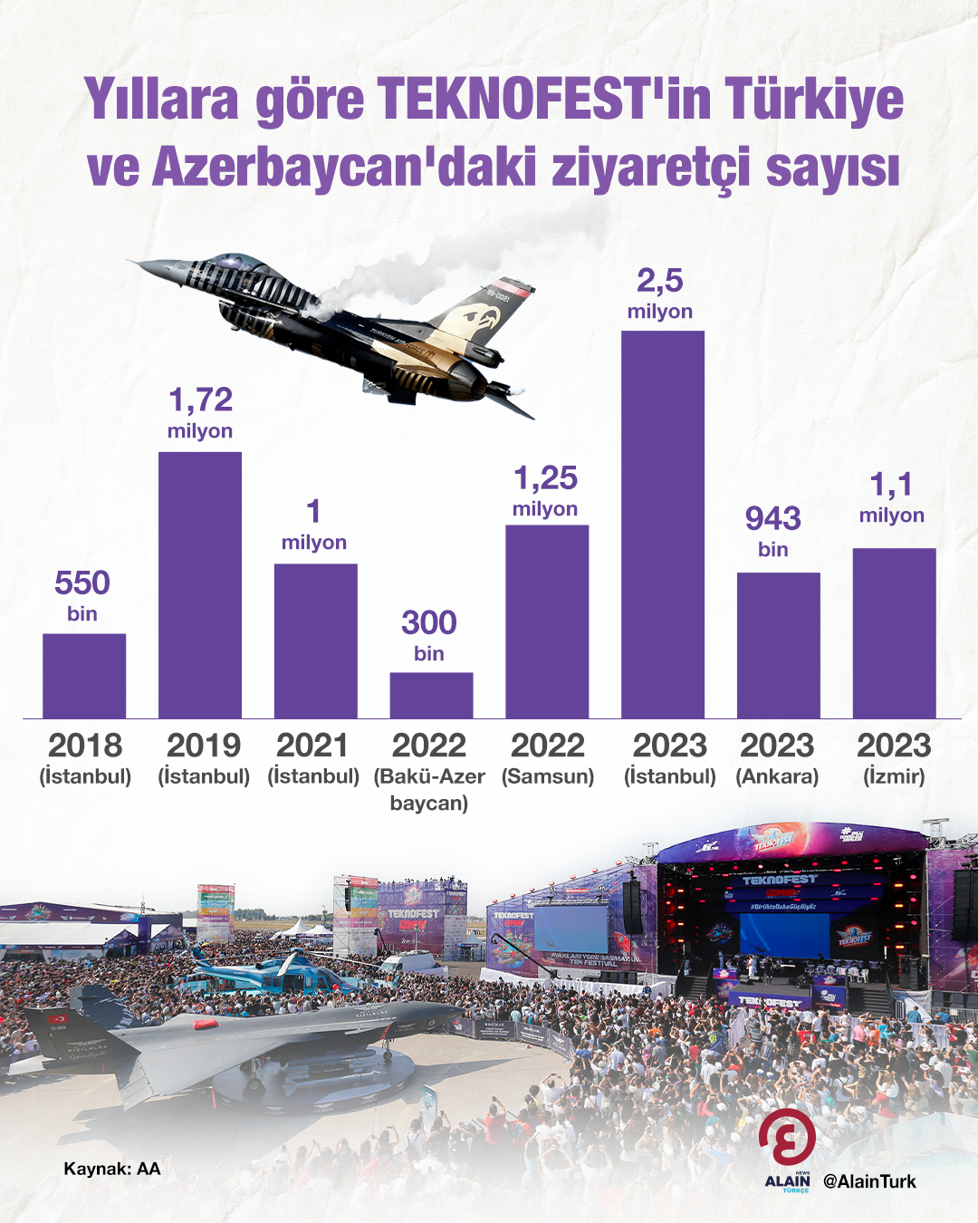 Yıllara göre TEKNOFEST'in Türkiye ve Azerbaycan'daki ziyaretçi sayısı