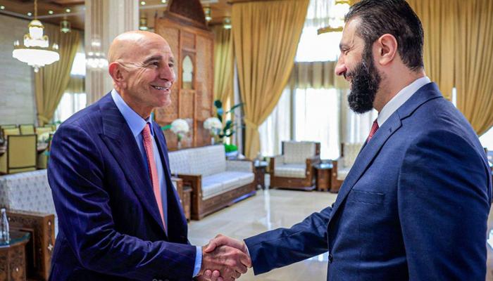 Metinde yer alan bilgiye göre, Suriye Geçici Cumhurbaşkanı Ahmed Şara ile ABD’nin Ankara Büyükelçisi ve Suriye Özel Temsilcisi Thomas Barrack, İstanbul’da bir araya geldi (24 Mayıs 2025).