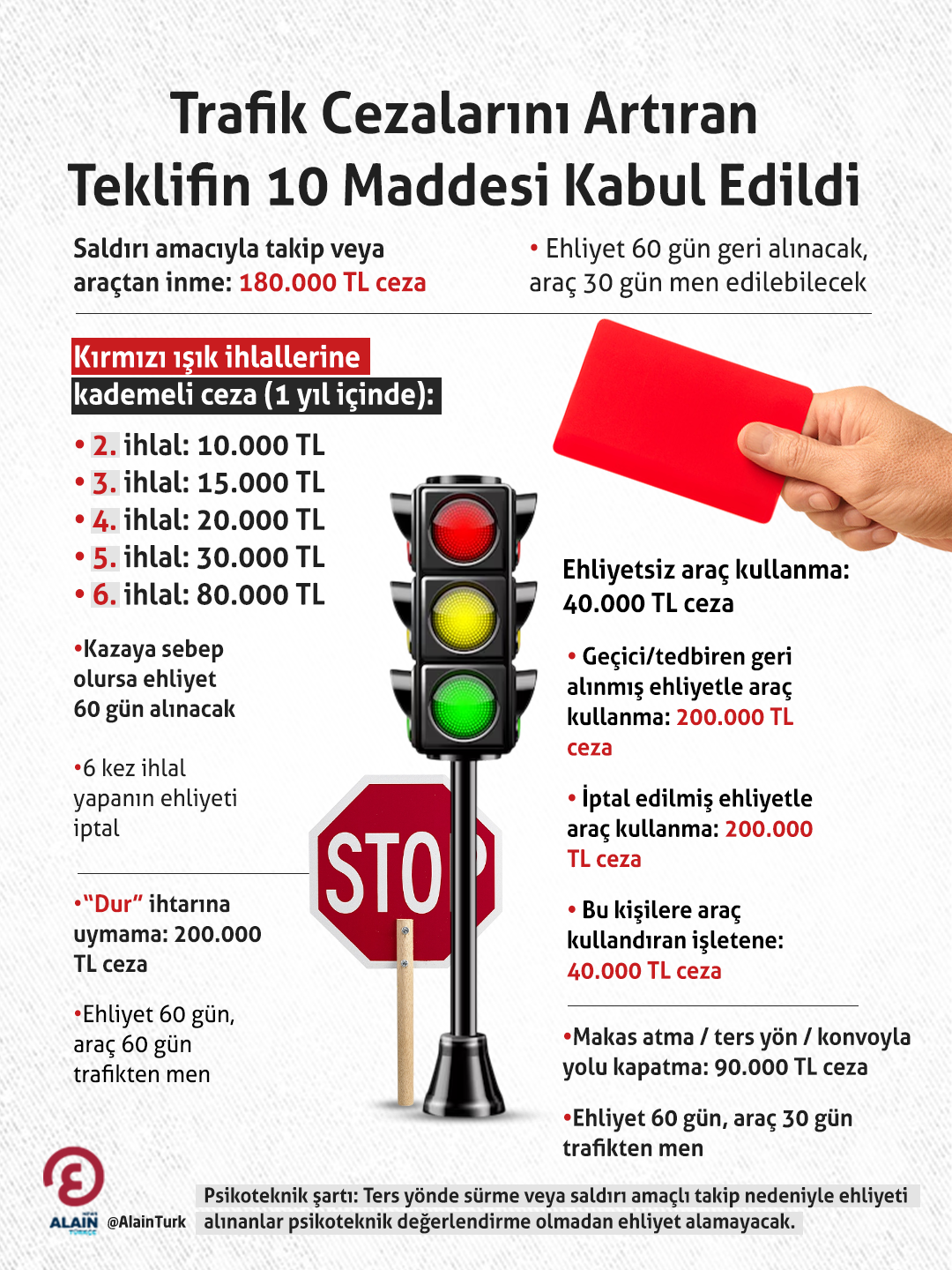 — Kırmızı ışık ihlallerine kademeli ceza (1 yıl içinde):
