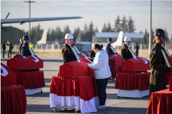 Türkiye, Azerbaycan-Gürcistan sınırında düşen C-130 tipi askeri kargo uçağında şehit olan 20 askerini Ankara’da düzenlenen törenle uğurladı. Şehitler için hazırlanan askeri program, sabah saatlerinde Mürted Hava Meydan Komutanlığı’nda gerçekleştirildi. Törene devlet protokolü, komuta kademesi ve şehit aileleri katıldı.