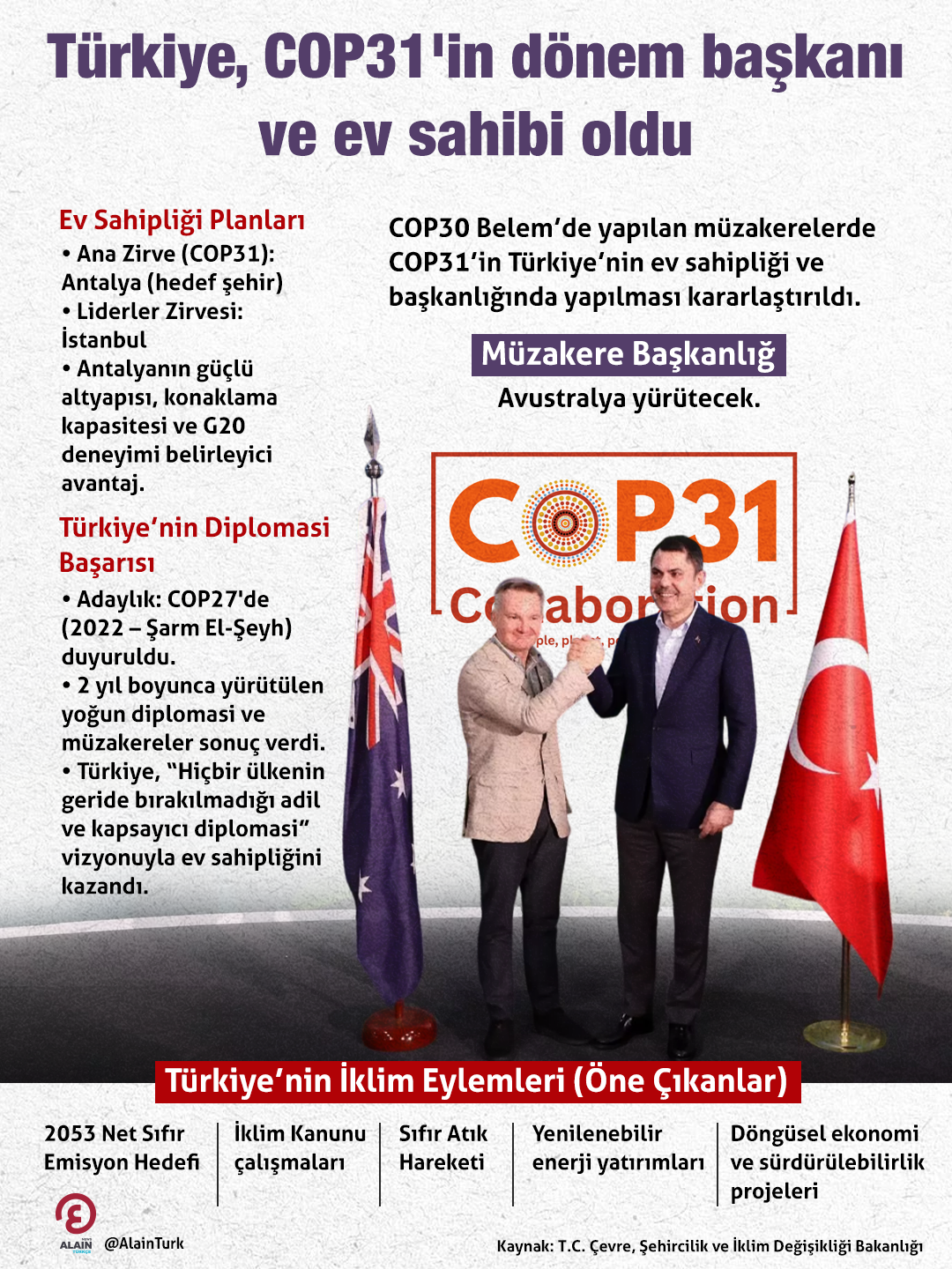 COP30 Belem’de yapılan müzakerelerde COP31’in Türkiye’nin ev sahipliği ve başkanlığında yapılması kararlaştırıldı.