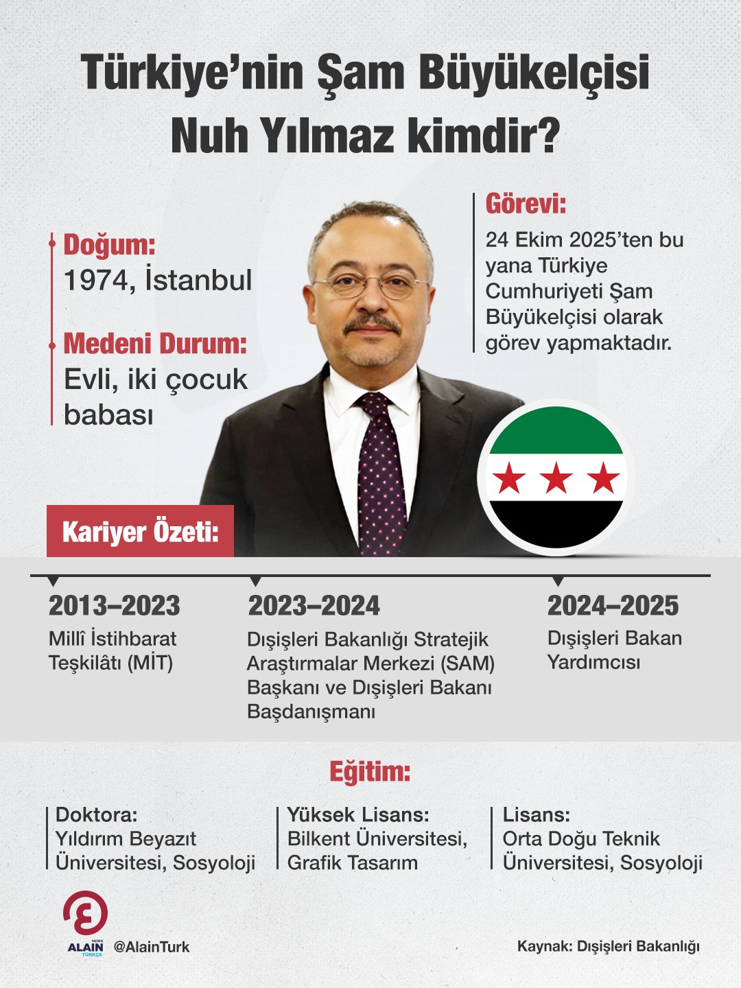 24 Ekim 2025’ten bu yana Türkiye Cumhuriyeti Şam Büyükelçisi olarak görev yapmaktadır.