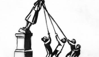 Banksy, "Protestocuların onu aşağı çekerken gösteren gerçek boyutlu bronz heykellerini yapalım" önerisinde bulundu.