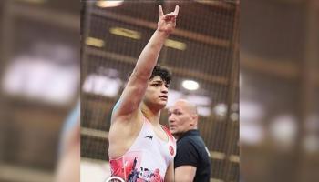 Sırbistan'da düzenlenen U20 Avrupa Şampiyonası'nda 82 kilogram grekoromen stilinde mücadele eden Alperen Berber, altın madalyanın ardından Merih Demiral'a destek olarak bozkurt işareti yaptı.