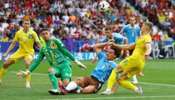 Avrupa Futbol Şampiyonası E grubunda Ukrayna ile Belçika ve Romanya ile Slovakya karşı karşıya geldi. Her iki maçın berabere sona ermesinden sonra Ukrayna turnuvaya veda etti.